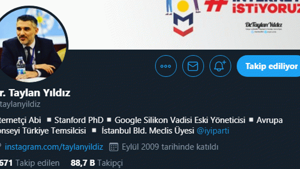 Öte yandan İYİ Partili Taylan Yıldız Twitter hesabındaki biyografi kısmına "İnternetçi abi" yazdı.