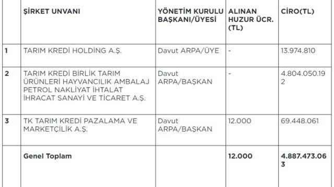 CHP Kayseri Milletvekili Çetin Arık'ın, Tarım Kredi Kooperatifleri Genel Müdürü Fahrettin Poyraz'ın 11, Genel Müdür Yardımcısı Davut Arpa'nın ise 5 farklı kuruluştan maaş aldığını iddiaları gündeme bomba gibi düşerken, Tarım Kredi Kooperatifi'nden konuya dair bir açıklama geldi.