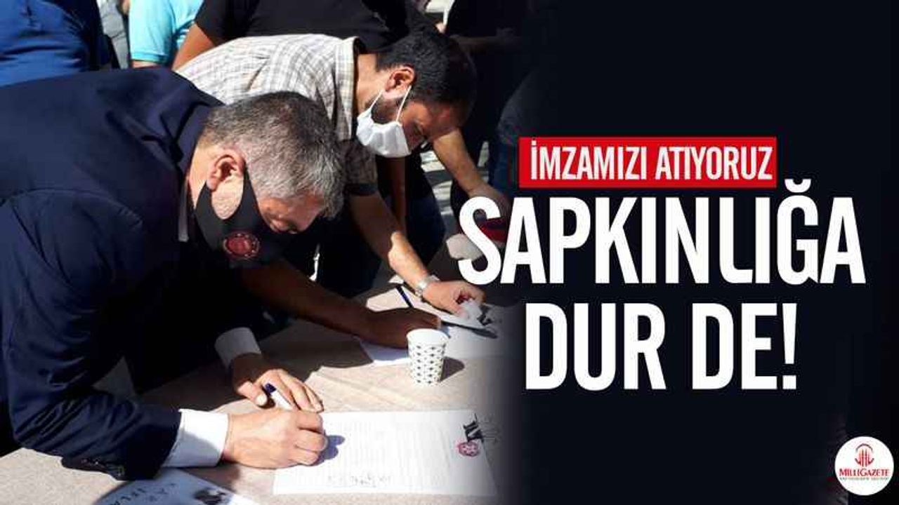 “Sapkınlığa dur de!” sloganıyla başlatılan imza kampanyası kapsamında basın açıklamasında da bulunuldu. Eyüpsultan Meydanı’nda vatandaşlara hitap eden Fikirde Birlik Platformu mensuplarının açıklamasında, “Aile kurumunu yıkmaya ve şaşkınlıklarını meşrulaştırmaya çalışan LGBT örgütüne dur demek, evlatlarımızı bu sapkınlıktan koruyabilmek için imza kampanyasına katılımlarınızı bekliyoruz” ifadeleri kullanıldı.