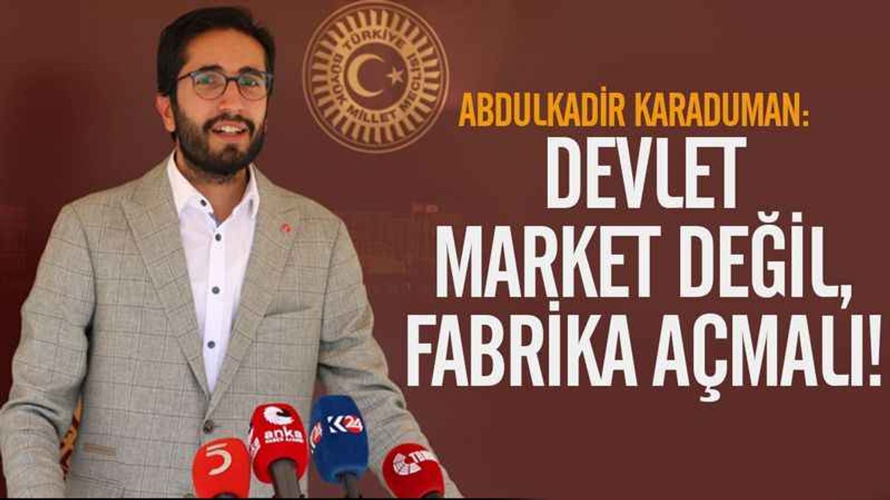 Saadet Partisi Konya Milletvekili Abdulkadir Karaduman, Meclis'te düzenlediği basın toplantısında devam eden market tartışmalarına değindi. Karaduman, devletin market değil, fabrika açması gerektiğinin altını çizdi. Karaduman, temel girdi maliyetlerinde ciddi bir artışın olduğunu vurgulayarak, “Bunun adı fakirleşmektir, yoksullaşmaktır” dedi.