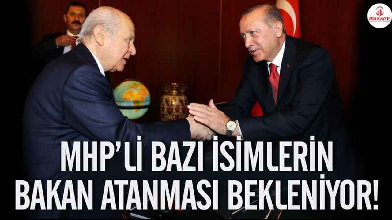 MHP Genel Başkanı Devlet Bahçeli’nin “kendilerini muhalefet” olarak ilan etmelerine rağmen Cumhurbaşkanı Erdoğan’ın, MHP’den bazı isimlerin kabinede yer almasını istediği dile getiriliyor. Özellikle MHP içerisinden iki bakanın kabineye atanabileceği konuşuluyor. Bu durumla birlikte AK Parti ve MHP’nin oluşturduğu Cumhur İttifakı ilk kez bir kabinede bir araya gelmiş olacak.