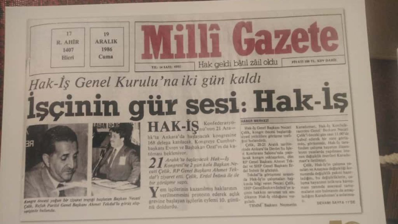 Kurulduğu günden bu yana “Hak, adalet ve emek” çizgisinden ödün vermeyen Millî Gazete, yalnızca bir yayın organı değil; emeğin, alın terinin ve hakkaniyetli bir düzenin sesi oldu. Hak-İş’in kuruluşundan itibaren emek mücadelesine destek veren gazetemiz, işçilerin hak arayışında kamuoyunun vicdanı olma misyonunu sürdürdü.