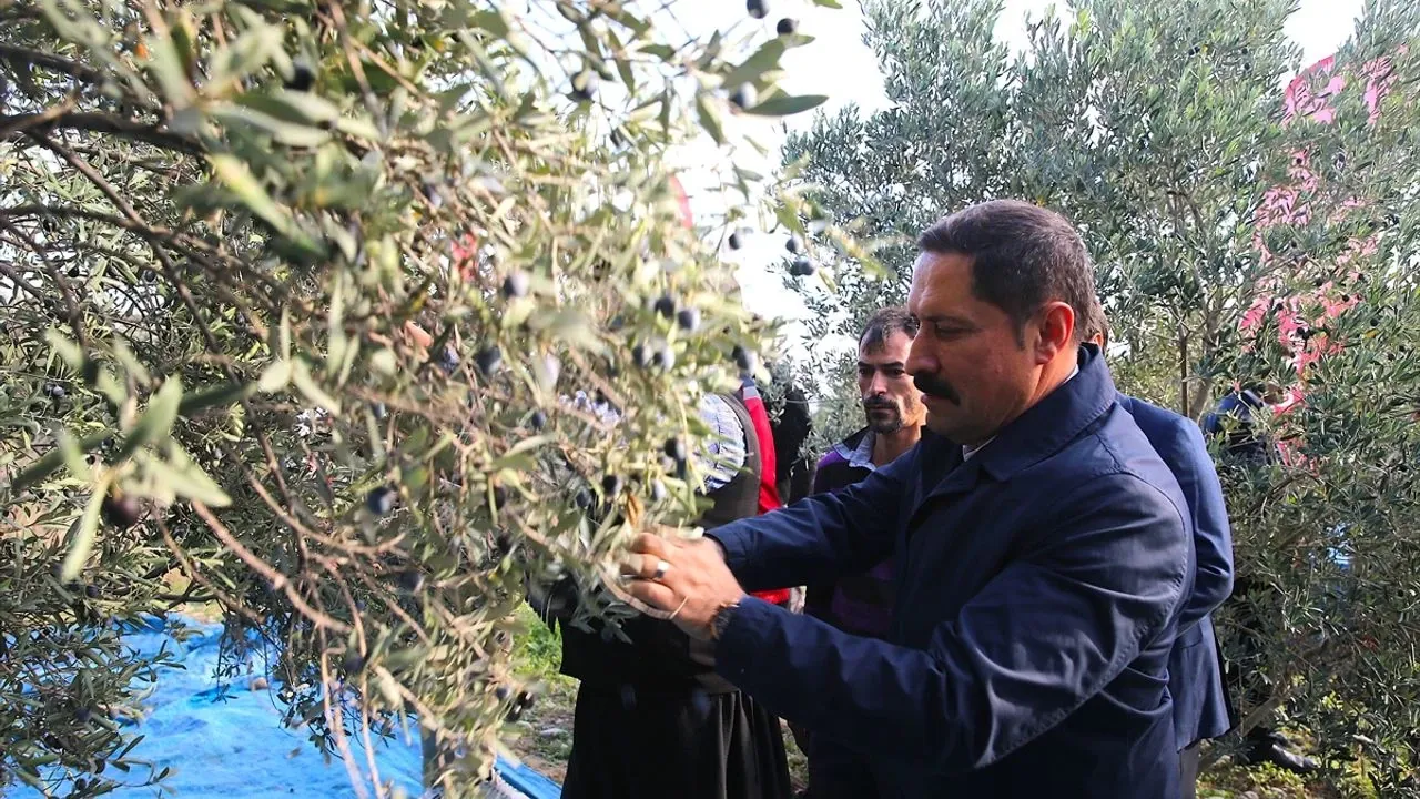 Hatay'da hasadı devam eden zeytinde bu yıl 201 bin ton rekolte elde edileceği öngörülüyor. Yaklaşık 17 milyon 102 bin zeytin ağacına sahip kentte, üreticilerin hasat mesaisi sürüyor. Vali Mustafa Masatlı Samandağ ilçesi Değirmenbaşı Mahallesi'ndeki çiftçi Salim Soğan'a ait bahçedeki zeytin hasadına katıldı. İşçilerle zeytin toplayan Masatlı, bahçe sahibine hasadın bereketli geçmesi temennisinde bulundu.