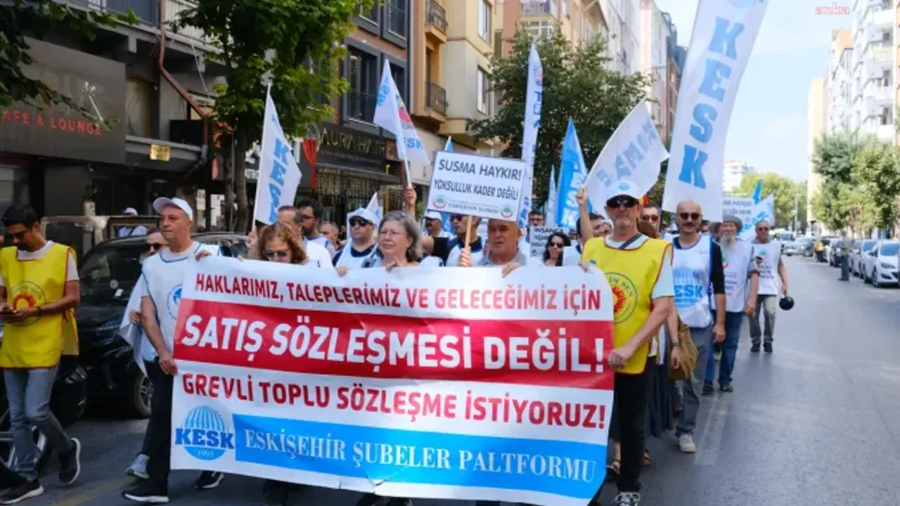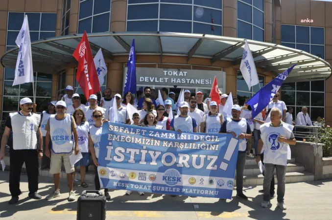 KESK üyeleri, hükümetin zam teklifini attıkları sloganlarla protesto ettiler, taleplerini içeren pankartlar açtılar.