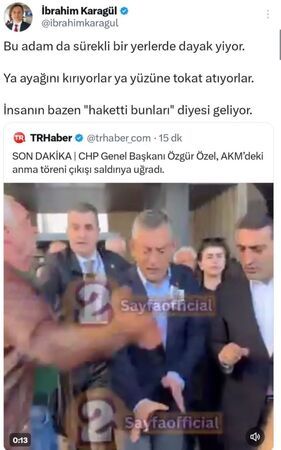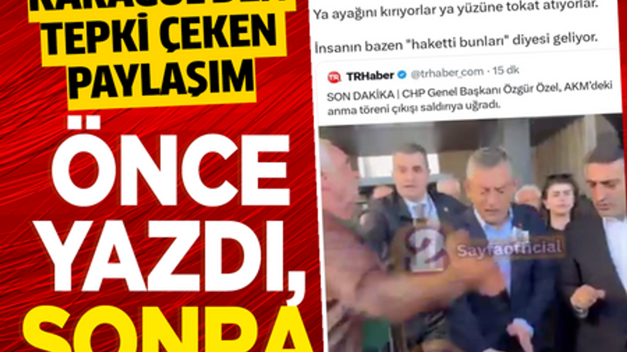 Karagül sosyal medya hesabından sahibi olduğu TRHaber'in Özgür Özel haberini paylaşırken "İnsan bazen "haketti bunları" diyesi geliuyor" diye yazdı.