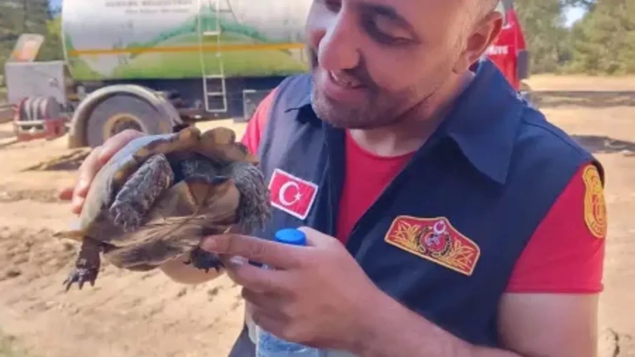 Bolu’nun Mengen ilçesinde çıkan orman yangınına müdahale eden itfaiye erleri, sıcaktan bunalan bir kaplumbağayı son anda kurtardı.