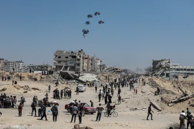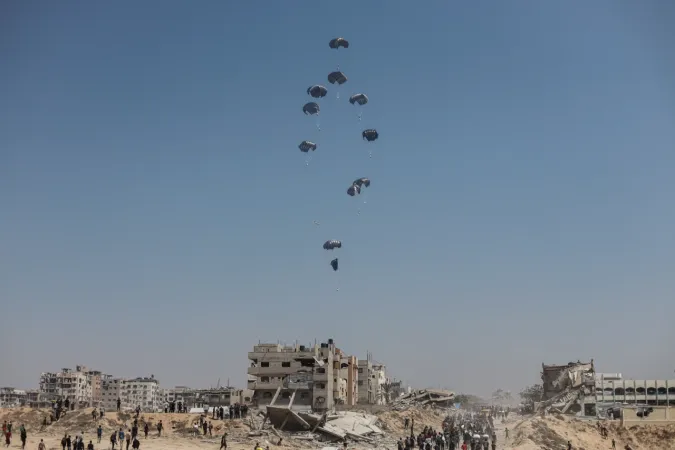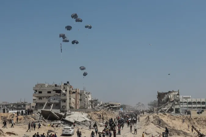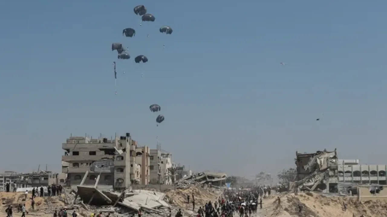 Sudanıyye bölgesinde, Birleşik Arap Emirlikleri’ne ait bir uçak tarafından havadan bırakılan yardım balonları, gıda temininde zorluk yaşayan Filistinliler tarafından toplanmaya çalışıldı. Açlık nedeniyle zor günler geçiren halk, yardımlara ulaşabilmek için bölgeye akın etti.