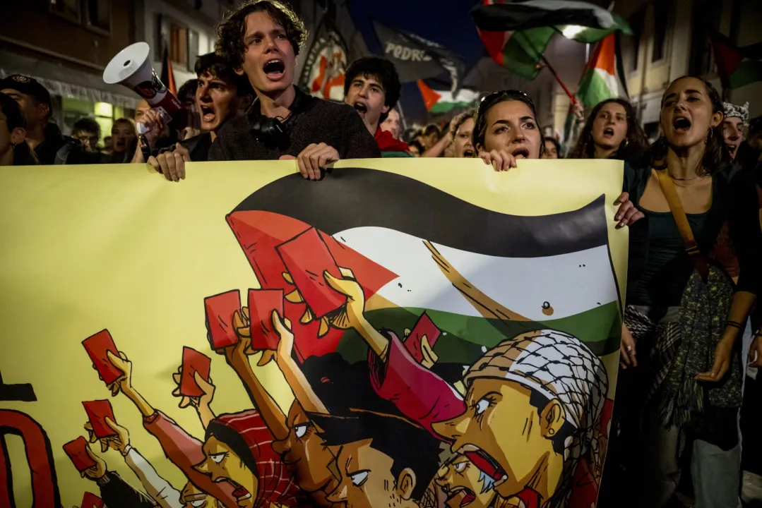 Futbolda 2026 Dünya Kupası Avrupa Elemeleri'ndeki İtalya- İsrail müsabakası öncesinde, maçın oynanacağı Udine kentinde binlerce kişi İsrail’i protesto etti. Protestocular, özellikle Gazze'de soykırım yaptığı gerekçesiyle "İsrail'e kırmızı kart göster" dövizi taşırken, İsrail’in uluslararası spor müsabakalarından men edilmesi gerektiğini belirtti. Bazı göstericiler de protesto yürüyüşünde ellerinde, üzerinde Gazze'de İsrail saldırılarında hayatını kaybeden çocukların isminin yazılı olduğu büyük boy bir kefen taşıdı.