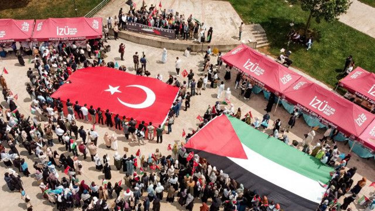 İstanbul Sabahattin Zaim Üniversitesi öğrencileri, Gazze'de yaşananları protesto etmek amacıyla yürüyüş düzenledi. Üniversite bünyesindeki öğrenci kulüplerinin ortak katılımıyla düzenlenen etkinlik kapsamında Küçükçekmece'deki kampüste bir araya gelen öğrenciler, ellerinde Türkiye, Filistin bayrakları ve pankartlarla yürüyüşe geçip sloganlar atarak İsrail'i protesto etti.
