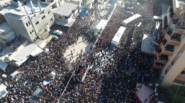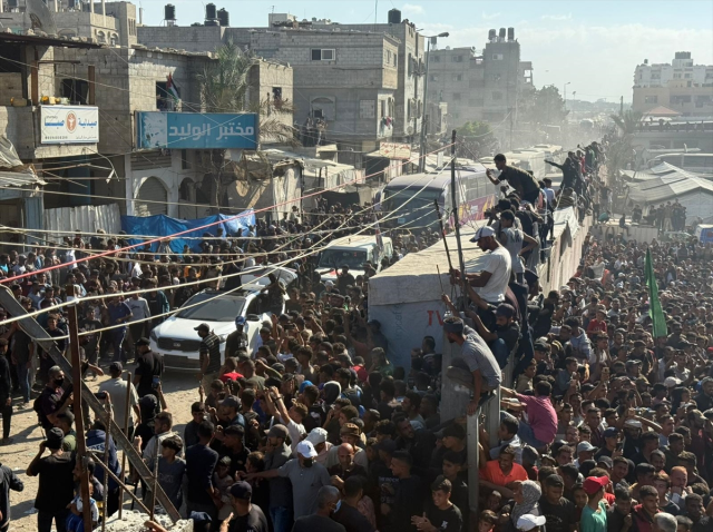 Esir Filistinliler, ilk olarak Refah'ın kuzeyindeki Moraj bölgesine ulaştıktan sonra sağlık kontrolleri ve yapılacak etkinlik için Han Yunus'taki Nasır Hastanesi'ne götürüldü. Esirleri karşılamak için çok sayıda Filistinli bölgede toplandı.