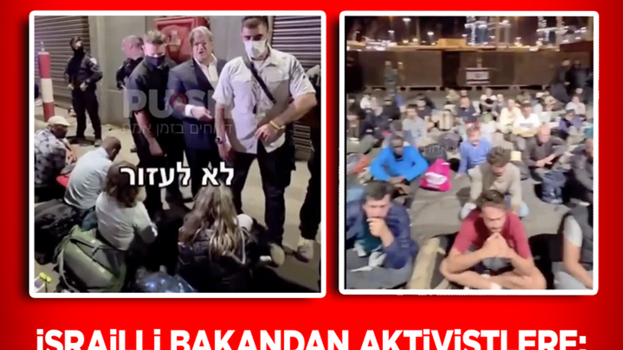 İsrail kabinesinin en ırkçı, gözünü en çok kan bürümüş isimlerinden biri olan Ulusal Güvenlik Bakanı Itamar Ben-Gvir, aktivistlerin alıkonulduğu yere giderek bir paylaşımda bulundu.