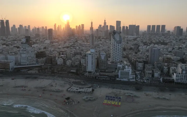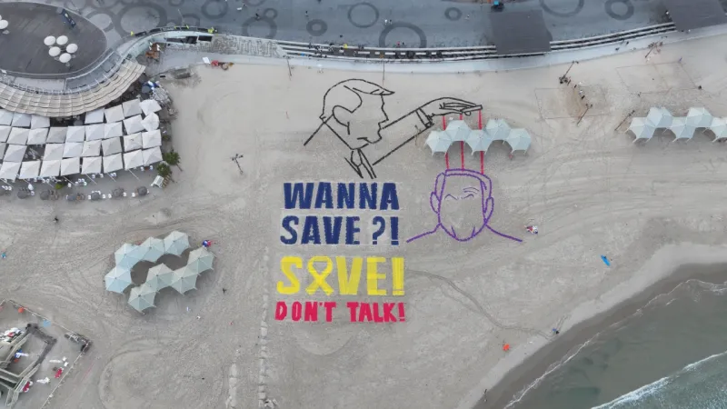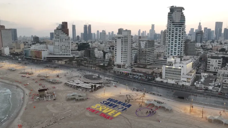 İsrail’de bir grup aktivist, Gazze’de tutulan İsrailli rehinelerin iadesi için ABD’nin Tel Aviv Büyükelçiliği yakınında eylem gerçekleştirdi. Aktivistler, ABD Başkanı Donald Trump ve İsrail Başbakanı Binyamin Netanyahu’yu temsil eden çizimler yaparak, İngilizce “Kurtarmak istiyor musun? Kurtar, konuşma" yazısını sahile işledi.