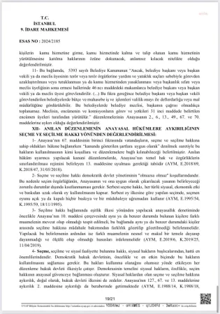 İstanbul 9. İdare Mahkemesi, Esenyurt Belediye Başkanı Ahmet Özer'in görevden uzaklaştırılması ve yerine kayyım atanması kararına karşı açılan davaya ilişkin verdiği kararda, terör suçuyla yargılanan veya tutuklanan Belediye Başkanının yerine İçişleri Bakanlığı ya da Vali tarafından kayyum atanması düzenlemesini içeren Belediye Kanunu'nun 45'inci maddesinin 2'nci fıkrasının Anayasa'ya aykırı olduğu kanaatiyle iptal edilmesi talebiyle Anayasa Mahkemesi'ne başvurdu.