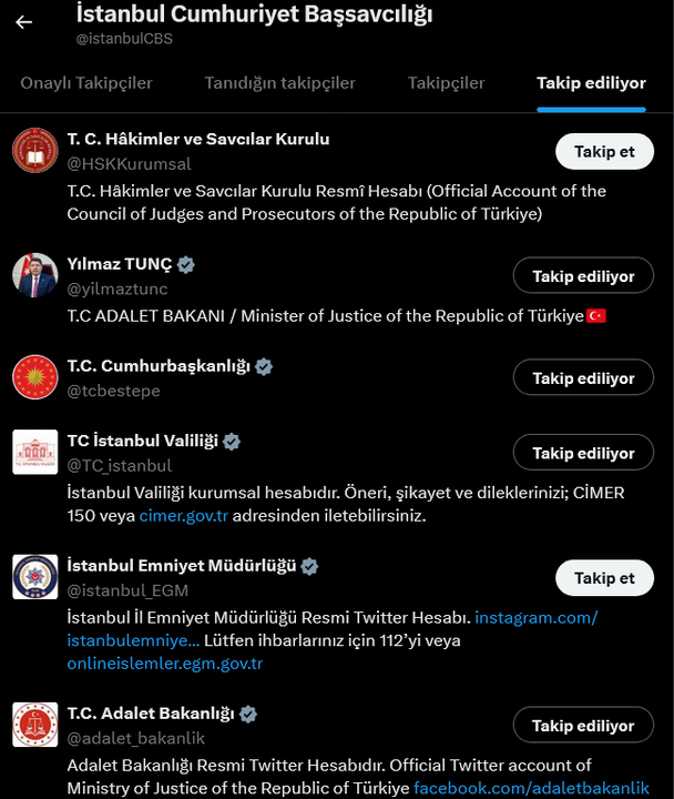 Başsavcılığın hesabının takibine aldığı altı hesap şunlar oldu: