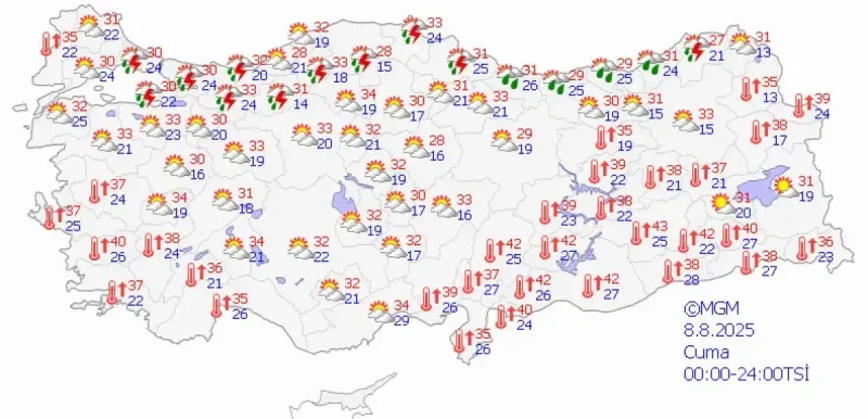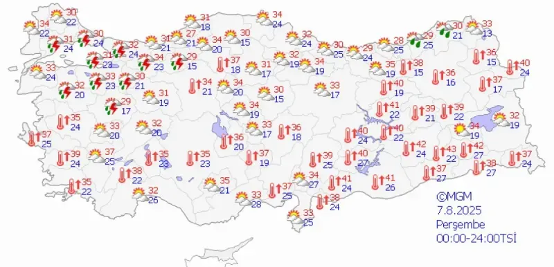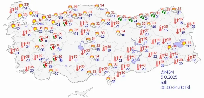 Öte yandan yurdun doğusunda sıcaklıklar, mevsim normallerinin 4 ila 6 derece üzerine çıkmaya devam ediyor. Doğu Anadolu ve Güneydoğu Anadolu bölgelerinde aşırı sıcaklar etkisini sürdürüyor. Bu bölgelerde yaşayan vatandaşların ise güneş çarpması ve sıcaklık kaynaklı sağlık sorunlarına karşı önlem almaları öneriliyor.