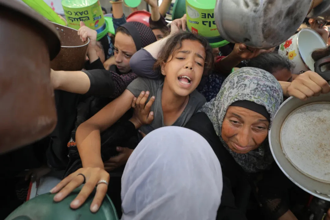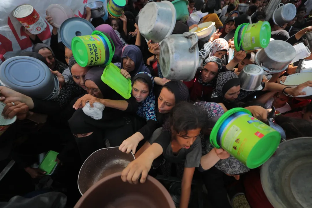 İsrail’in Gazze Şeridi’ne yönelik ablukası ve devam eden saldırıları nedeniyle gıdaya erişimde zorluk yaşayan Filistinlilere, bir hayır kurumu tarafından sıcak yemek dağıtımı yapıldı. Gazze’nin orta kesimindeki Nuseyrat Mülteci Kampı’nda gerçekleştirilen yemek dağıtımı sırasında bir kap yemek alabilmek için çoluk çocuk, kadın, genç, ihtiyar Gazzelilerin oluşturduğu izdiham yürekleri sızlattı.