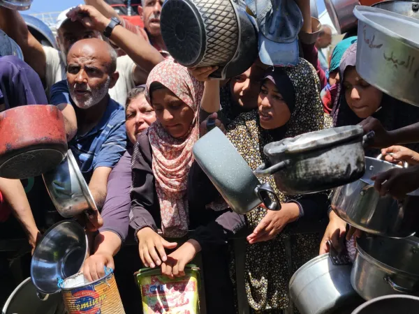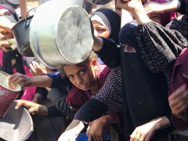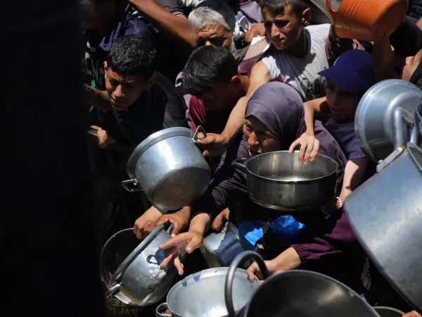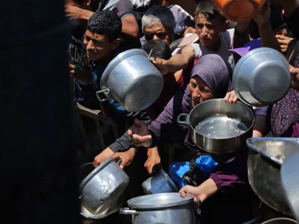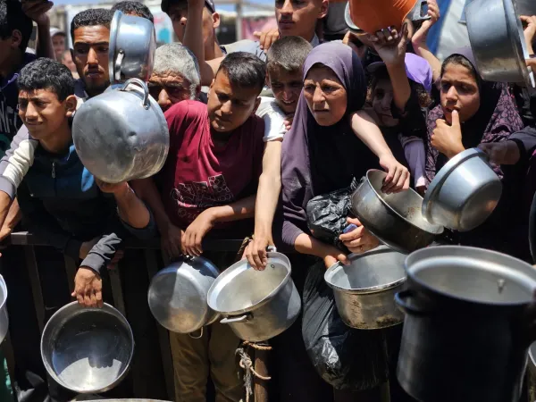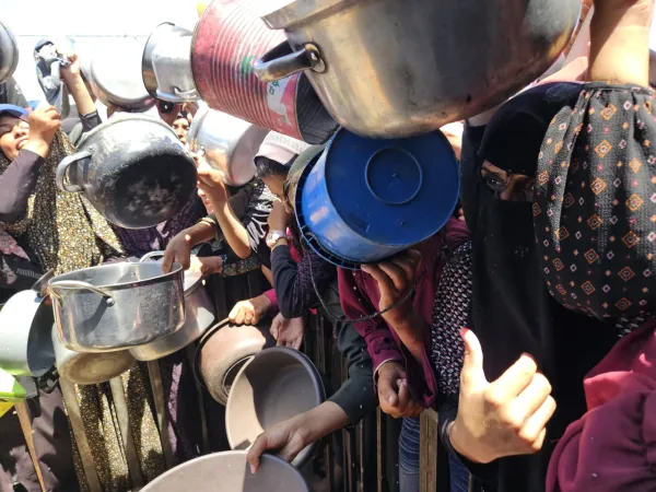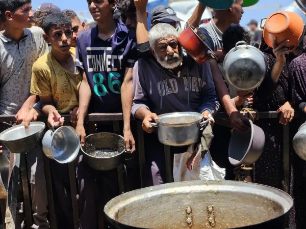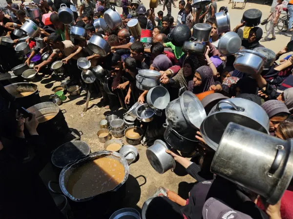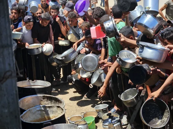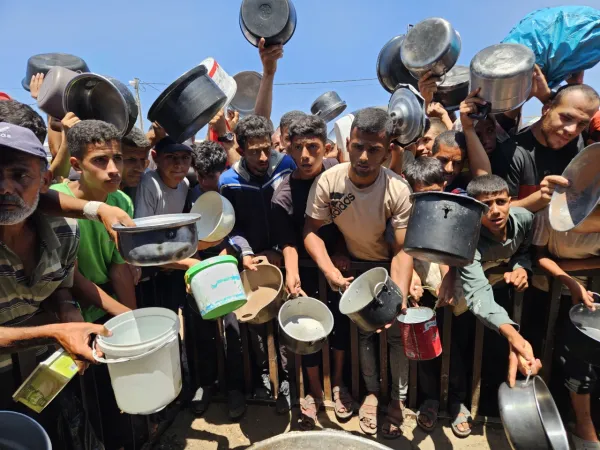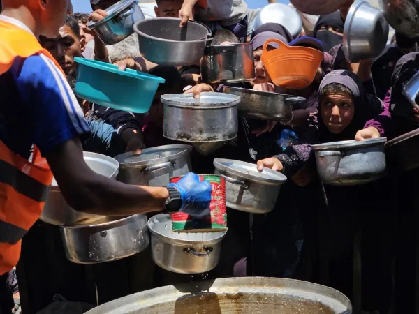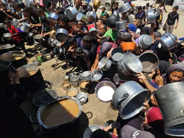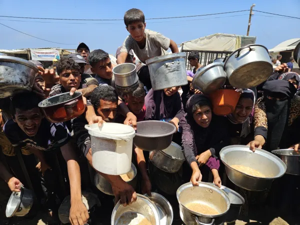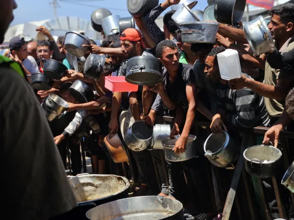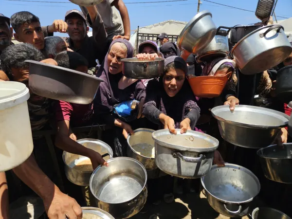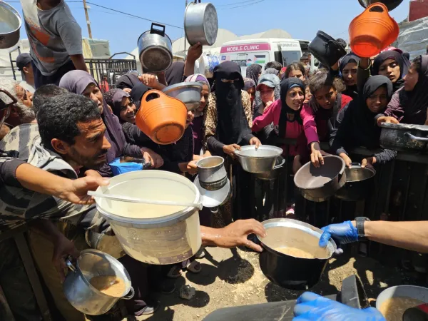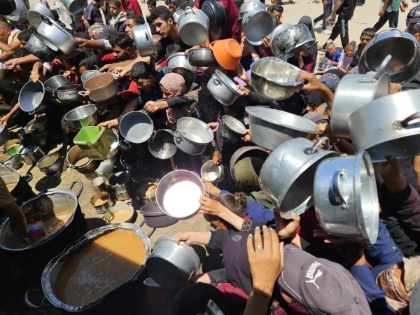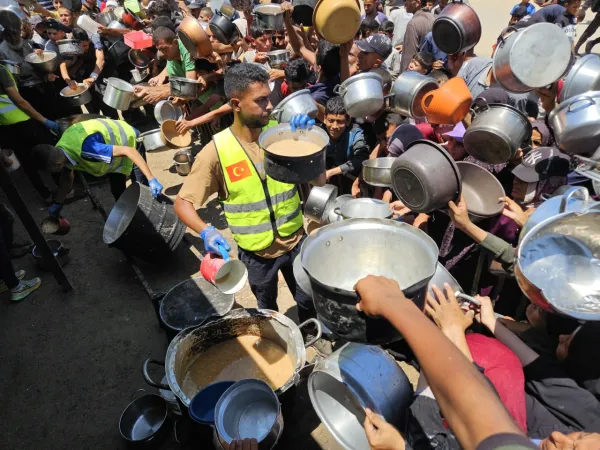 Barbar İsrail'in ablukası ve saldırıları nedeniyle Gazze Şeridi'nde derinleşen gıda krizinden etkilenen Filistinliler, yardım kuruluşları tarafından dağıtılan sıcak yemeklerden alabilmek için ellerinde kaplarla uzun kuyruklar oluşturuyor. Gazze'nin Han Yunus kentine bağlı Mevasi bölgesindeki Filistinlilere hayır kurumları tarafından yemek dağıtımı yapıldı. İnsanların çoluk çocuk, kadın, genç ihtiyar yemek dağıtımında yaşadıkları izdiham yürekleri burkuyor.