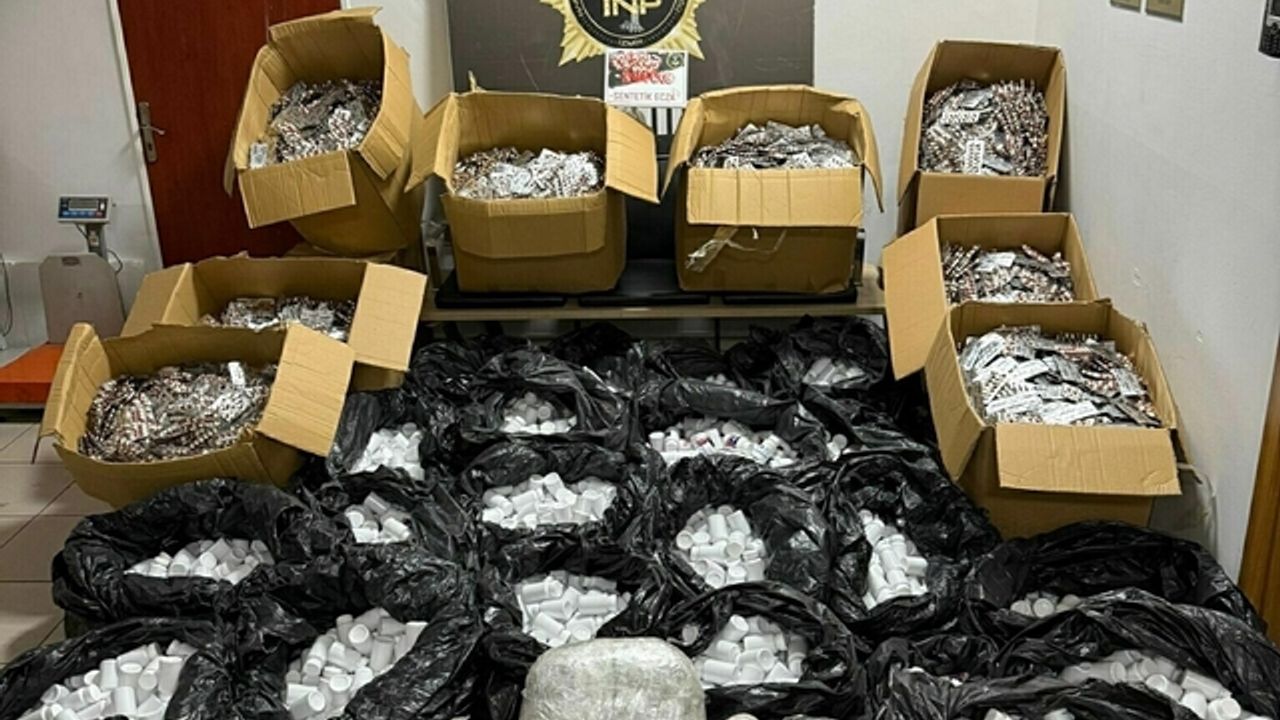 Depoya düzenlenen baskında 550 bin 32 uyuşturucu hap, 4 kilo 358 gram sentetik uyuşturucu ele geçirildi. Deşifre edilen deponun uyuşturucu ticaretinde dağıtım merkezi olarak kullanıldığı belirlendi. Gözaltına alınan 2 şüphelinin emniyetteki işlemleri sürüyor.
