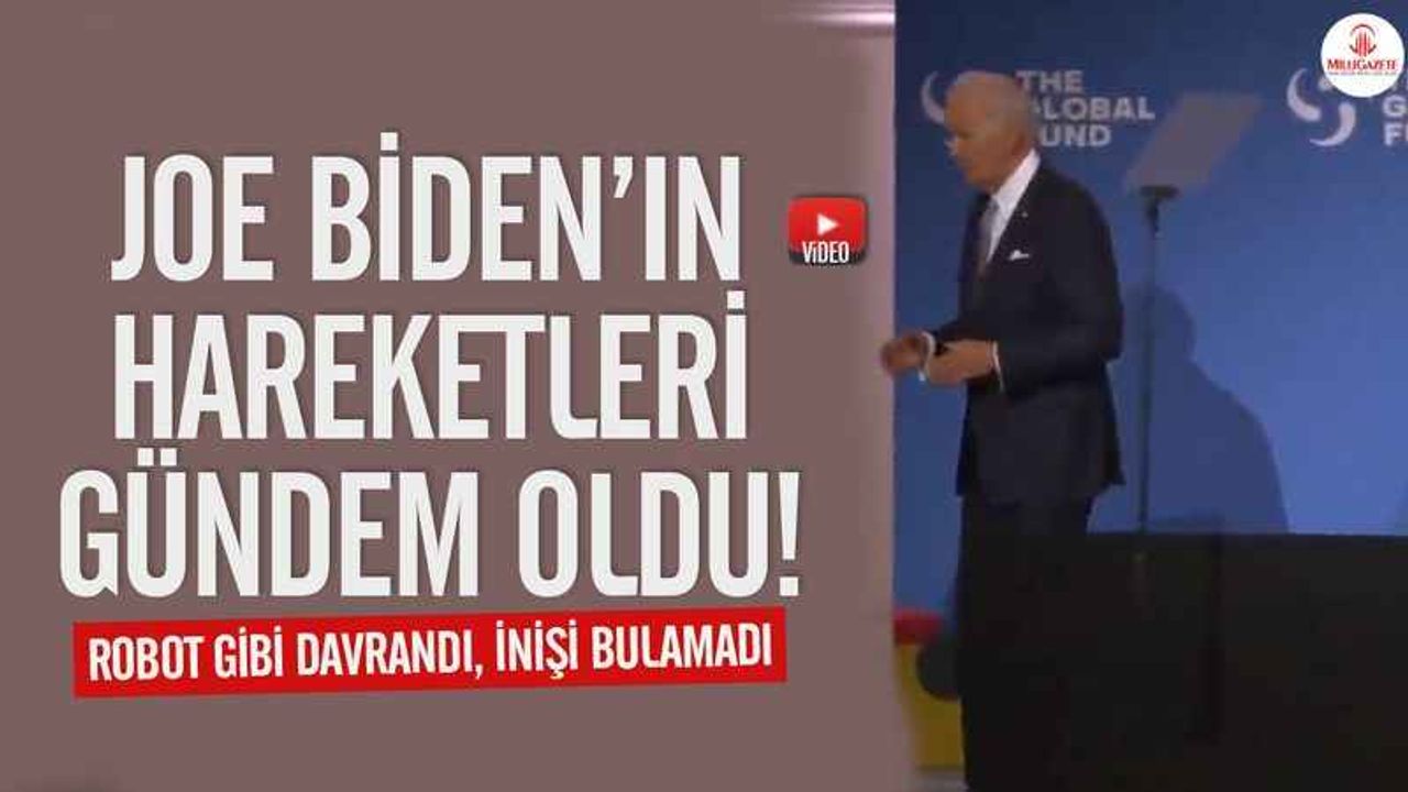 Konuşmasının ardından kürsüyü terk eden Biden’ın robot gibi hareket etmesi dikkat çekerken sahneyi nereden terk edeceğini de bir müddet bulamadı. Etrafına bakan ve ne yapacağını bilemeyen Biden’ın bu tavırları ülke gündemine konu oldu