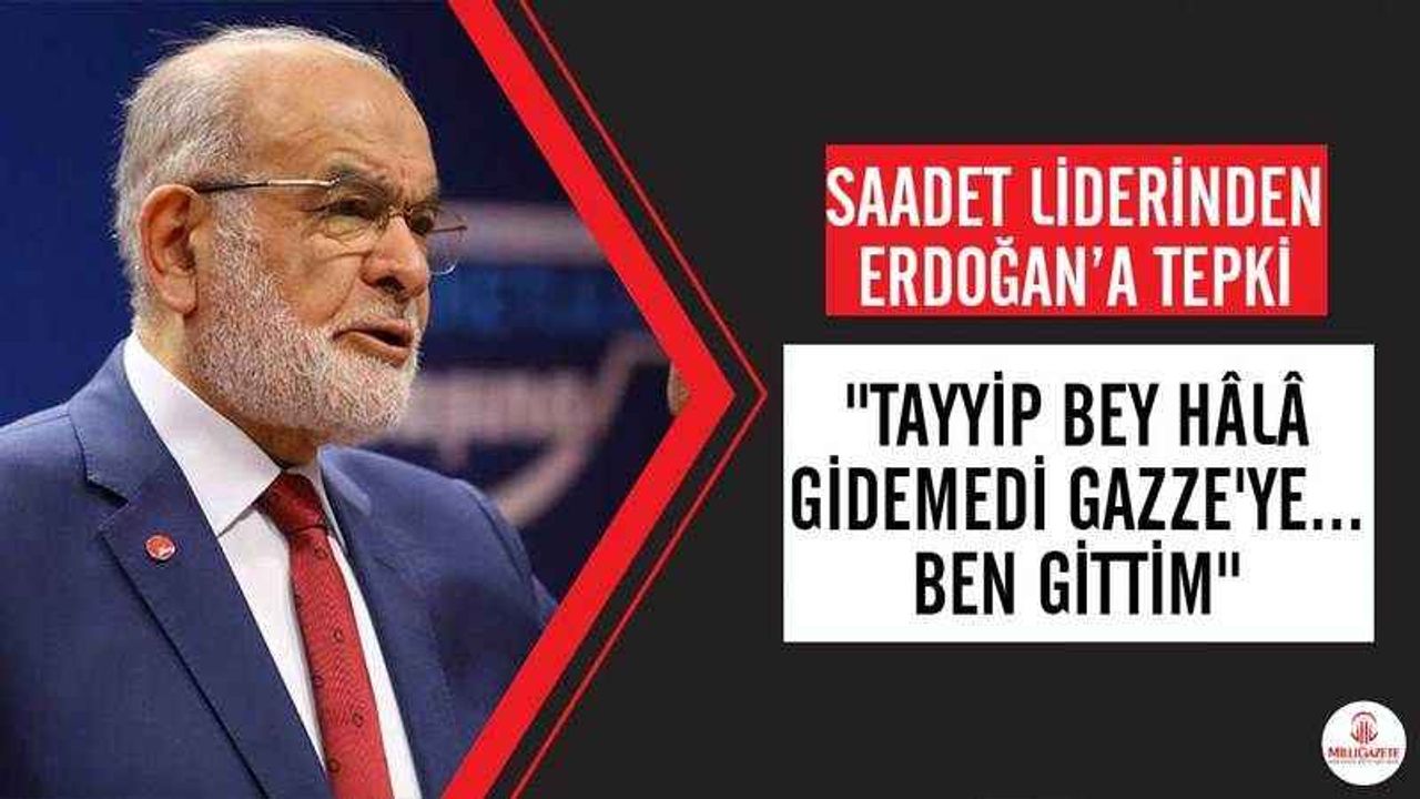 Saadet Partisi Genel Başkanı Temel Karamollaoğlu TV5’te yayınlanan Gündem Türkiye Programında Mustafa Yılmaz’ın sorularını cevaplandırarak gündeme ilişkin açıklamalarda bulundu. Programda Yılmaz’ın Cumhurbaşkanı ve AKP Genel Başkanı Recep Tayyip Erdoğan'ın Birleşmiş Milletler kürsüsünde İsrail'in Filistin'i işgal ettiğini gösterdiği harita ve sonrasında Herzog'u resmi ziyaretle karşılaması ile ilgili sorulan Karamollaoğlu, hükümetin tutumuna tepki göstererek "Tayyip Bey hâlâ gidemedi Gazze'ye... Ben gittim." dedi.