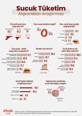 Türk halkının favori sucuk tercihi ise yüzde 59 ile acılı sucuk oldu. Acısız sucuğu tercih edenlerin oranı ise yüzde 41 olarak belirlendi.
