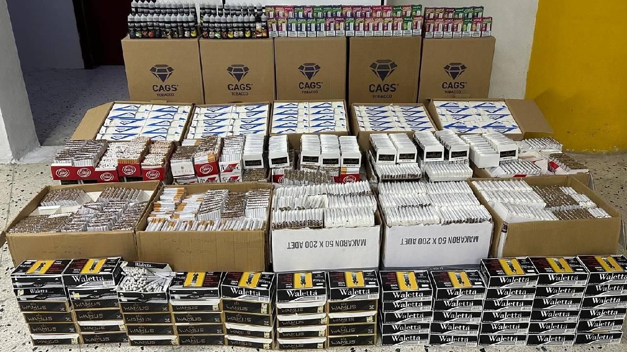 Yapılan aramalarda kutular dolusu 502 bin adet makaron (filtreli sigara kağıdı) ve 1.710 adet kaçak sigara ele geçirildi.