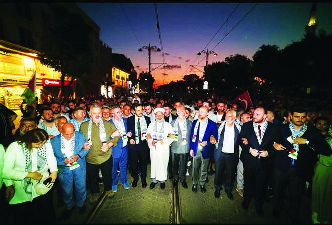 “Ellerde fener, dillerde tekbir, Filistin’e destek, Gazze’ye umut ışığı” propagandasıyla Beyazıt-Ayasofya Camisi arasında yapılan yürüyüşü organize eden kuruluşun tanıtım sayfasında, “Fenerli yürüyüşle yalnızca Gazze’ye değil, ümmetin üzerine çöken karanlığa da meydan okunduğu” ilan edilirken, “Gazze-İstanbul yürüyüşünde kimler vardı” soru başlığının altına yazılan, siyaset sahamızdaki ‘enka’ örneğimiz iki isimdi: Bilal Erdoğan ve Selçuk Bayraktar.