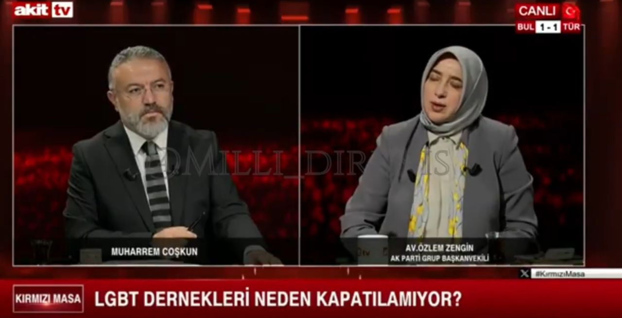 Programa katılan AKP Grup Başkan Vekili Özlem Zengin’e, gazeteci Muharrem Coşkun tarafından “LGBTİ dernekleri kapatılmalı mı?” sorusu yöneltildi.