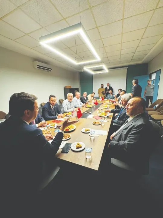 * Sohbette hemen her katılımcı söz alarak görüş ve düşüncelerini paylaştı. Her söz alanı dikkatle dinledi Mahmut Bey. Zaman zaman not aldı, arada kurmaylarına not aldırdı.