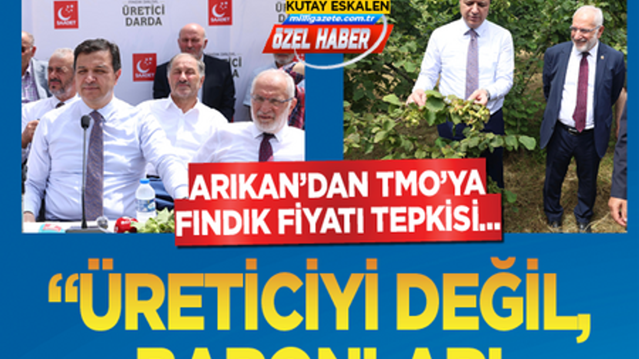 Saadet Partisi Genel Başkanı Mahmut Arıkan, yaptığı yazılı açıklamada Toprak Mahsulleri Ofisi'nin (TMO) açıkladığı fındık alım fiyatına tepki gösterdi. Serbest piyasada fındığın kilosunun 250 liraya kadar çıktığını hatırlatan Arıkan, “TMO’nun 195 lira açıklaması, üreticiyi korumak yerine baronların işine yaradı. Bu karar doğrudan piyasaya müdahaledir ve üretici aleyhine alınmıştır” dedi.
