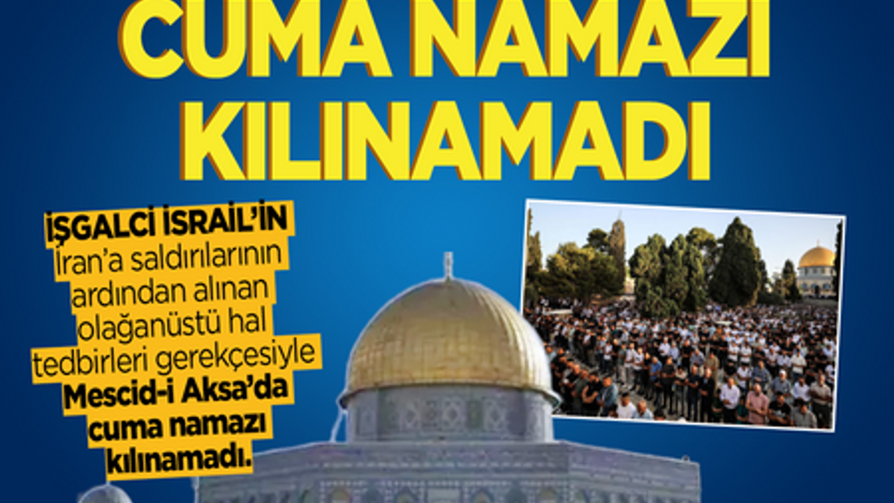 İsrail'in İran'a saldırılarının ardından alınan olağanüstü hal tedbirleri gerekçesiyle Mescid-i Aksa'da cuma namazı kılınmayacağı açıklandı.