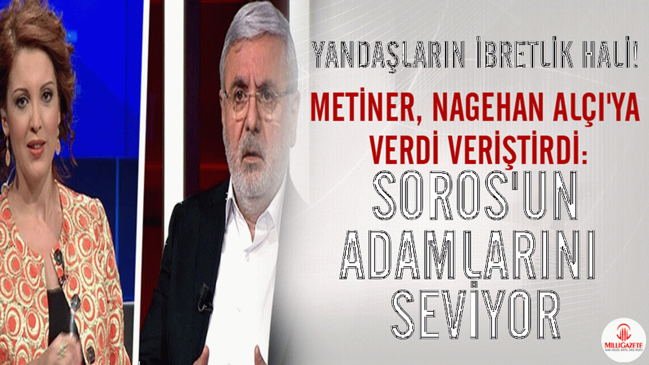 AKP'li Mehmet Metiner, TV100'de katıldığı canlı yayında AKP destekçisi Nagehan Alçı için "Soros’un adamlarını pek bir seven gazeteci" ifadelerini kullandı.