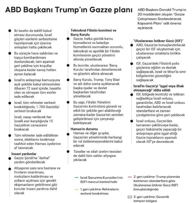 - Gazze’den ayrılmak isteyen Hamas üyelerine, gidecekleri ülkelere güvenli geçiş sağlanacak.