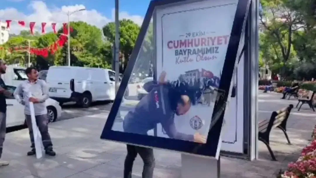 Afişlerde, "29 Ekim Cuhmuriyet Bayramımız kutlu olsun" ifadeleri yer aldı.