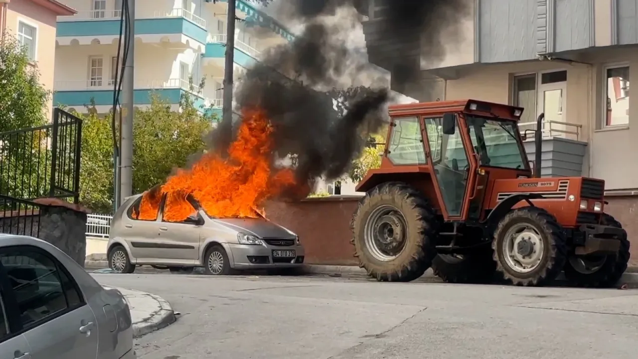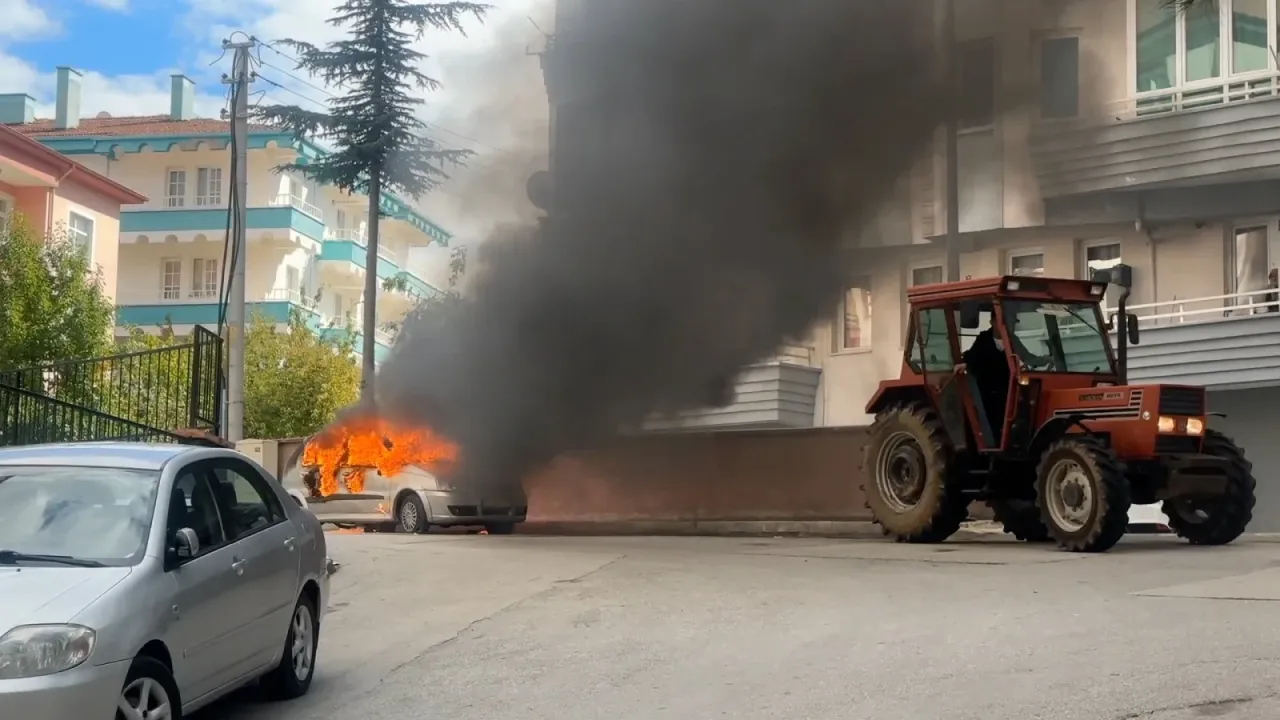 Tartışmanın ardından N.A, M.A'ya ait sokakta park halinde bulunan 34 DTD 379 plakalı otomobili ateşe verdi. İhbar üzerine olay yerine polis ve itfaiye ekipleri sevk edildi. Bu sırada bir genç, otomobilin önünde park halindeki traktörü çalıştırarak yangın bölgesinden uzaklaştırdı. Çorum Belediyesi itfaiye ekiplerince söndürülen yangında araç kullanılamaz hale geldi. Polis, kaçan kadının yakalanması için çalışma başlattı.