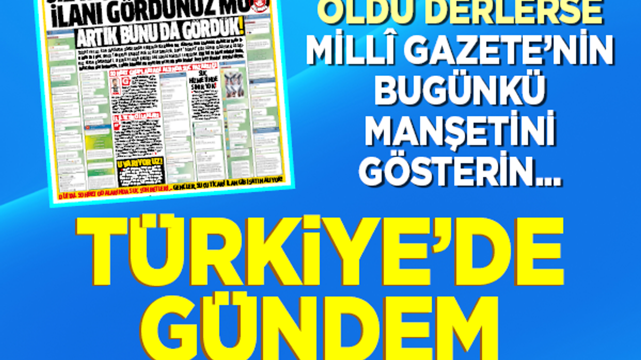 Millî Gazete'nin dün "Siz hiç kiralık katil ilanı gördünüz mü?" manşetiyle yayımladığı haber, Türkiye gündemine oturdu. Gazetenin, kamuoyunu uyarma sorumluluğuyla ortaya çıkardığı bu durum, internetin arka planında dönen ahlak dışı ve yasa dışı faaliyetlerin boyutlarını gözler önüne serdi. Gazeteciliğin en temel görevi olan "ihbar" niteliğindeki bu yayın, toplumda büyük bir şok dalgasına neden oldu.