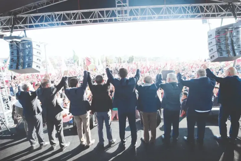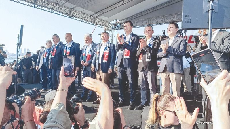 CHP'nin Cumhurbaşkanı adayı Ekrem İmamoğlu da, mitinge mesaj gönderdi. İmamoğlu'nun mesajında şu ifadeler yer aldı: “Orta Doğu bir savaşın eşiğine sürükleniyor. Barışa ve hukuka her zamankinden fazla ihtiyacımız var. İsrail’in katliamları ve uluslararası toplumun sessizliği bölgemizi uçuruma sürüklüyor. Filistin’deki bu dram artık yalnızca bölgesel değil, küresel bir tehdittir. İsrail, diplomatik girişimleri sabote ediyor ve barış ihtimalinden endişe duyuyor. Artan petrol ve altın fiyatları, bu saldırganlığın ekonomilere verdiği zararın açık göstergesidir. Biz artık hiçbir masumun ölmediği, barış içinde bir Orta Doğu görmek istiyoruz. Ülkemiz bu hedefte barışın ve umudun temsilcisi olacak. Güçlü iradeli, vizyoner bir Türkiye'ye kavuşacağımız günler yakındır.”
