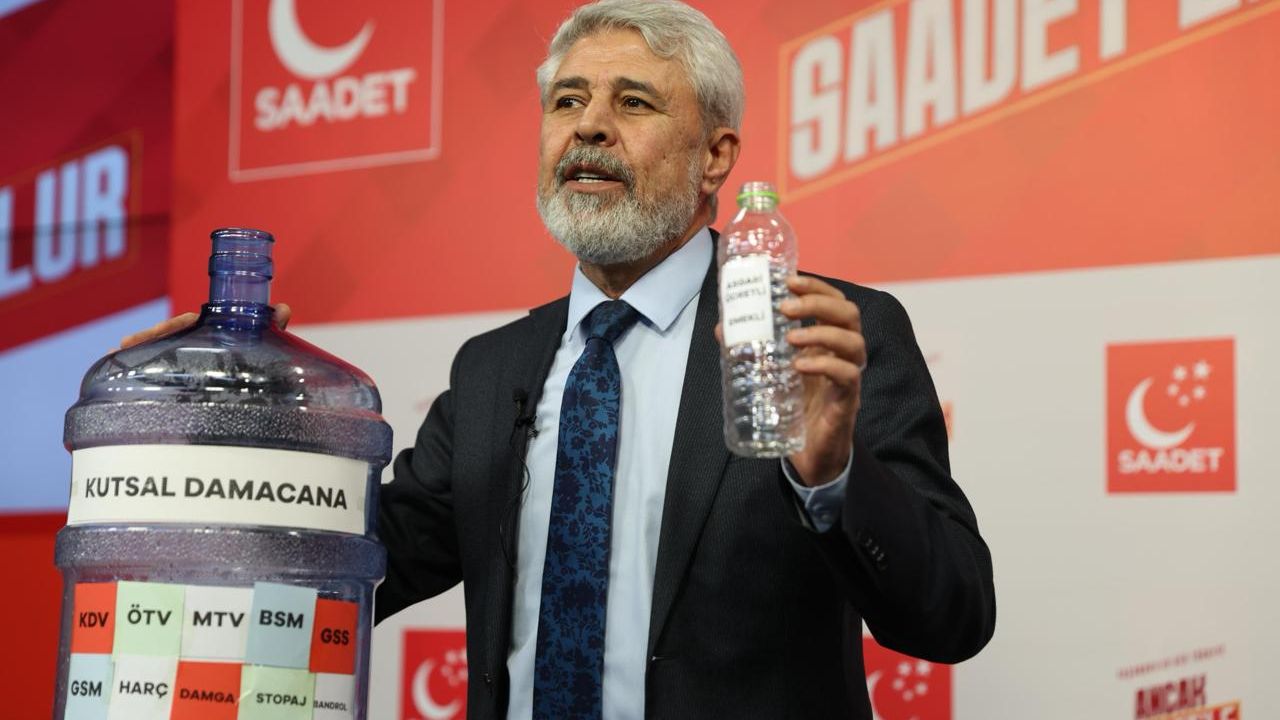Saadet Partisi Genel Başkan Yardımcısı Mustafa Yılmaz, partisinin genel merkezinde düzenlediği basın toplantısında hükümetin 2026 yılı bütçesini eleştirdi. Yılmaz, kürsüye bir damacana ile çıkarak bütçeyi “Kutsal Damacana” olarak nitelendirdi ve “Bu bütçeden sadece bankalar ve kankalar kârlı çıkacak” dedi.