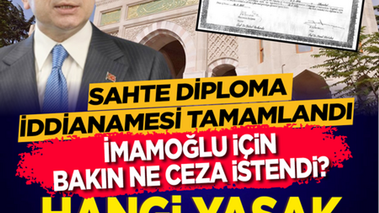 İmamoğlu hakkında iptal edilen diploması nedeniyle "zincirleme şekilde resmi belgede sahtecilik" suçundan 2 yıl 6 aydan 8 yıl 9 aya kadar hapis cezası ve "siyasi yasak" talebiyle iddianame düzenlendi.