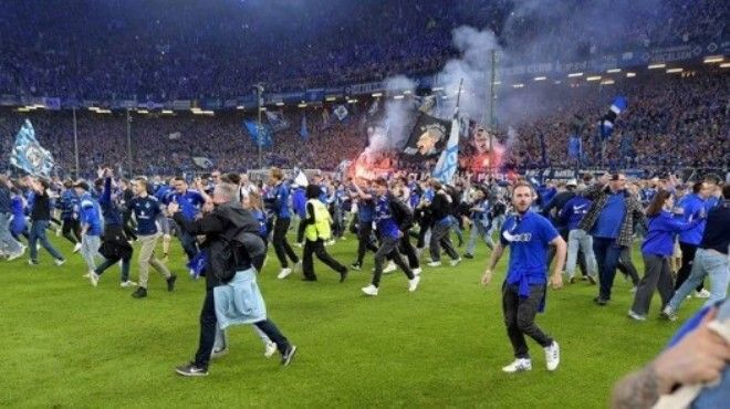 Almanya’nın köklü kulüplerinden Hamburg’un 7 yıl sonra yeniden Bundesliga’ya yükselmesi az kalsın felakete sebep oluyordu. Bundesliga 2'nin 33. haftasında dün akşam Hamburg'un evinde SSV Ulm 1846'ı 6-1 yendiği karşılaşma sonrası sahaya giren taraftarlar izdihama sebep oldu.