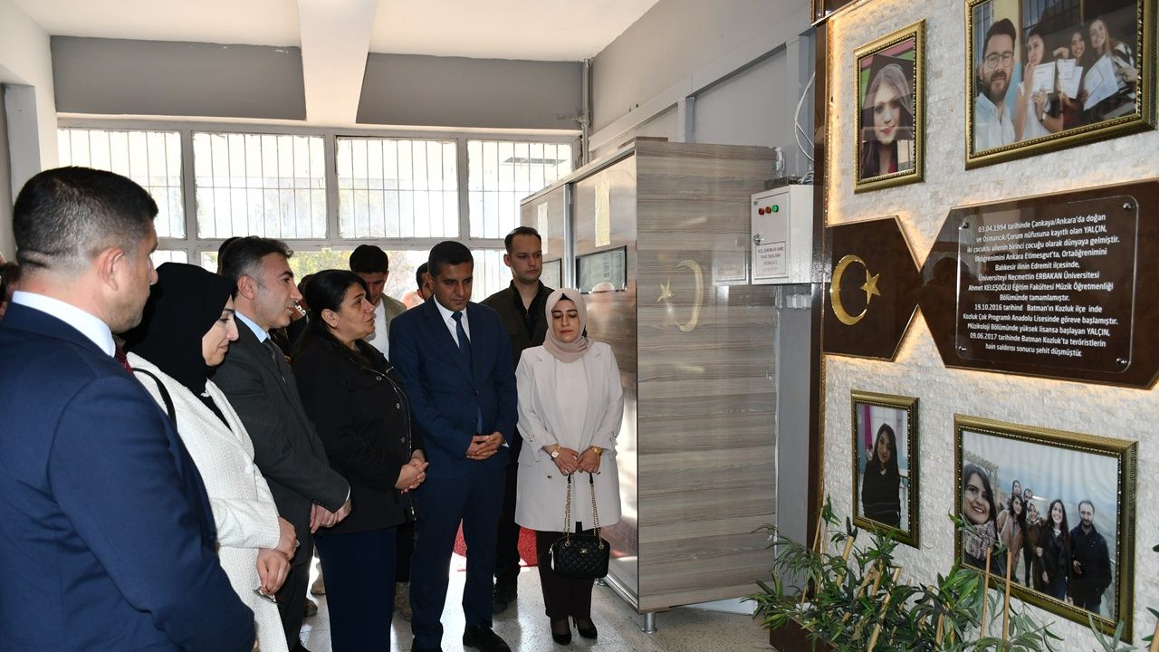 Şehit Şenay Aybüke Yalçın Fen Lisesindeki şehidin adını taşıyan müzik atölyesinde gerçekleştirilen anma programında, şehit öğretmenin fotoğrafının bulunduğu alana karanfiller bırakıldı.
