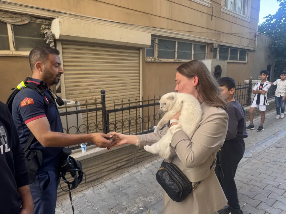 Bu arada, bir apartman sakini evde kedisinin kaldığını iletmesi üzerine itfaiye ekipleri kediyi evden çıkararak sahibine teslim etti.