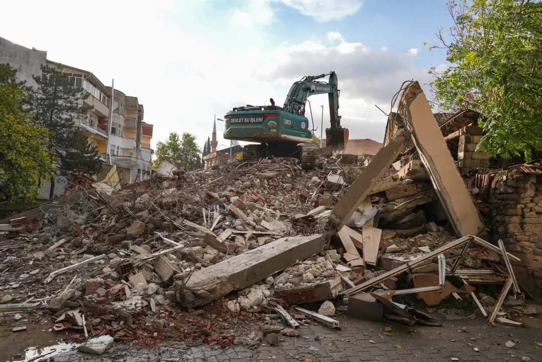 İnceleme ve belgeleme işlemlerinin tamamlanmasının ardından yıkılan binalarda enkaz kaldırma çalışmalarına kontrollü şekilde başlandı.