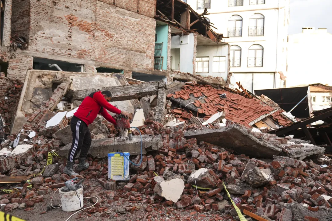Balıkesir'in Sındırgı ilçesinde dün meydana gelen 6,1 büyüklüğündeki depremin ardından yıkılan binalarda enkaz kaldırma çalışmaları başlatıldı.