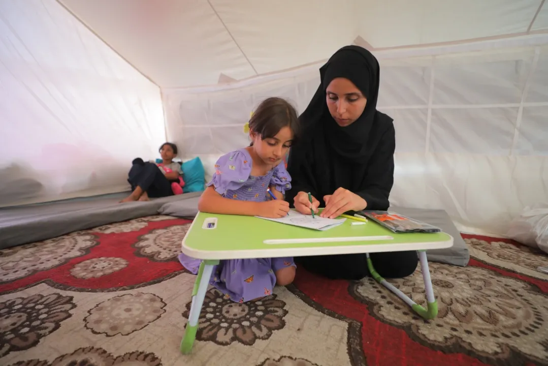 Deyr el-Belah'ta bir çadırda yaşam mücadelesi veren aile