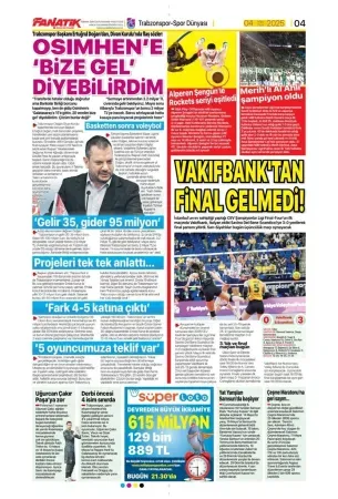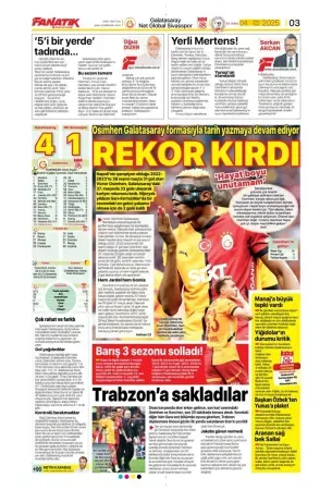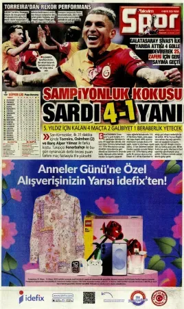Günün spor manşetlerinde, spor gündemiyle alakalı en yeni gelişmeler yerlerini aldı.4 Mayıs 2025 tarihli gazetelerin spor sayfalarına, Beşiktaş, Fenerbahçe, Galatasaray ve Trabzonspor'a dair haberlere, bir çırpıda göz atın. İşte 4 Mayıs 2025 gazete manşetlerinde spor haberleri.