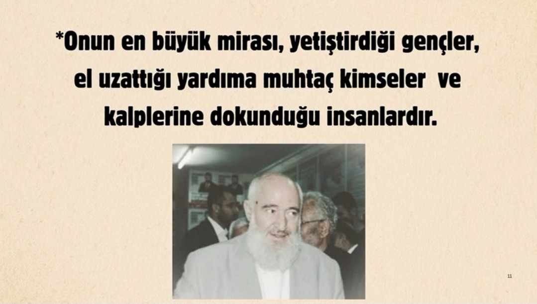 Tek cümleyle ifade edecek olursak; Asr-ı Saadet'in günümüzdeki temsilcisi bir aile, ayaklı kütüphane, tavizsiz Müslüman, güzel bir Millî Görüşçüydü."