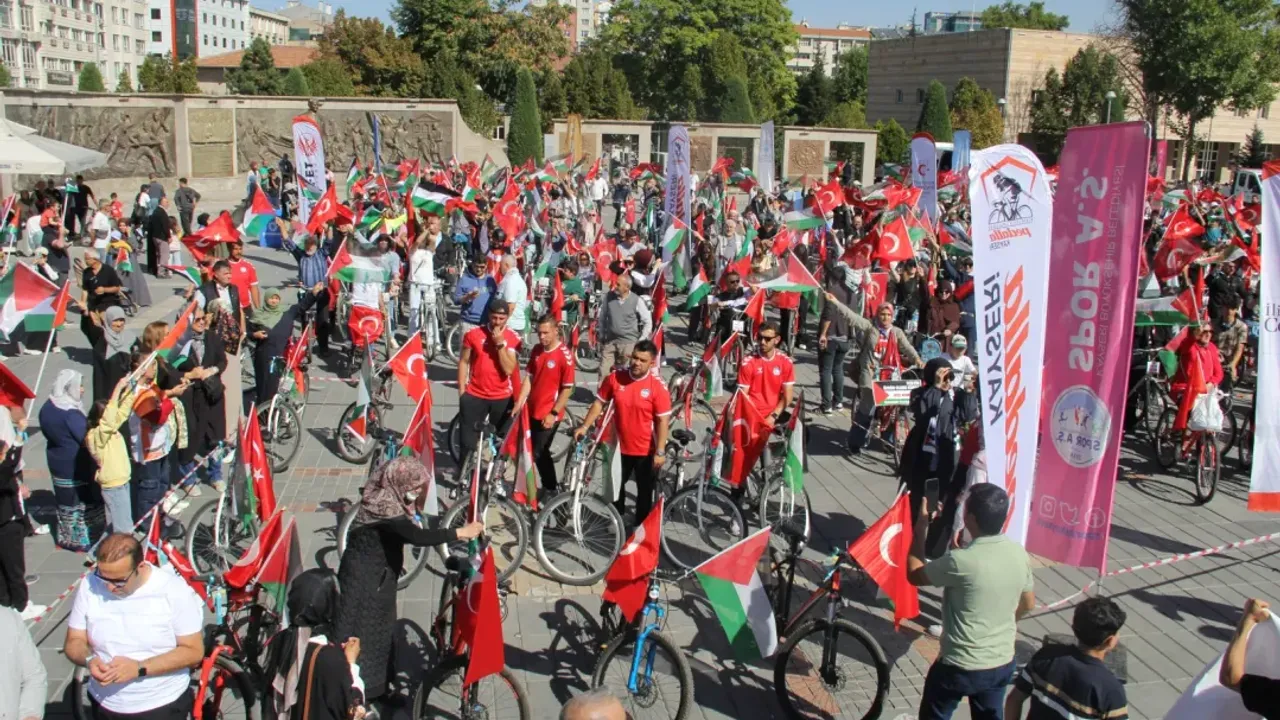 Kayseri'de Filistin ve Küresel Sumud Filosu'na destek olmak, İsrail'in saldırılarını protesto etmek amacıyla bisiklet turu düzenlendi. Kayseri Büyükşehir Belediyesi Spor AŞ ve Kayseri Filistin'le Dayanışma Platformu işbirliğiyle "Sumud için pedallıyoruz" sloganıyla Cumhuriyet Meydanı'nda düzenlenen etkinliğe 500'ü aşkın bisikletli katıldı.