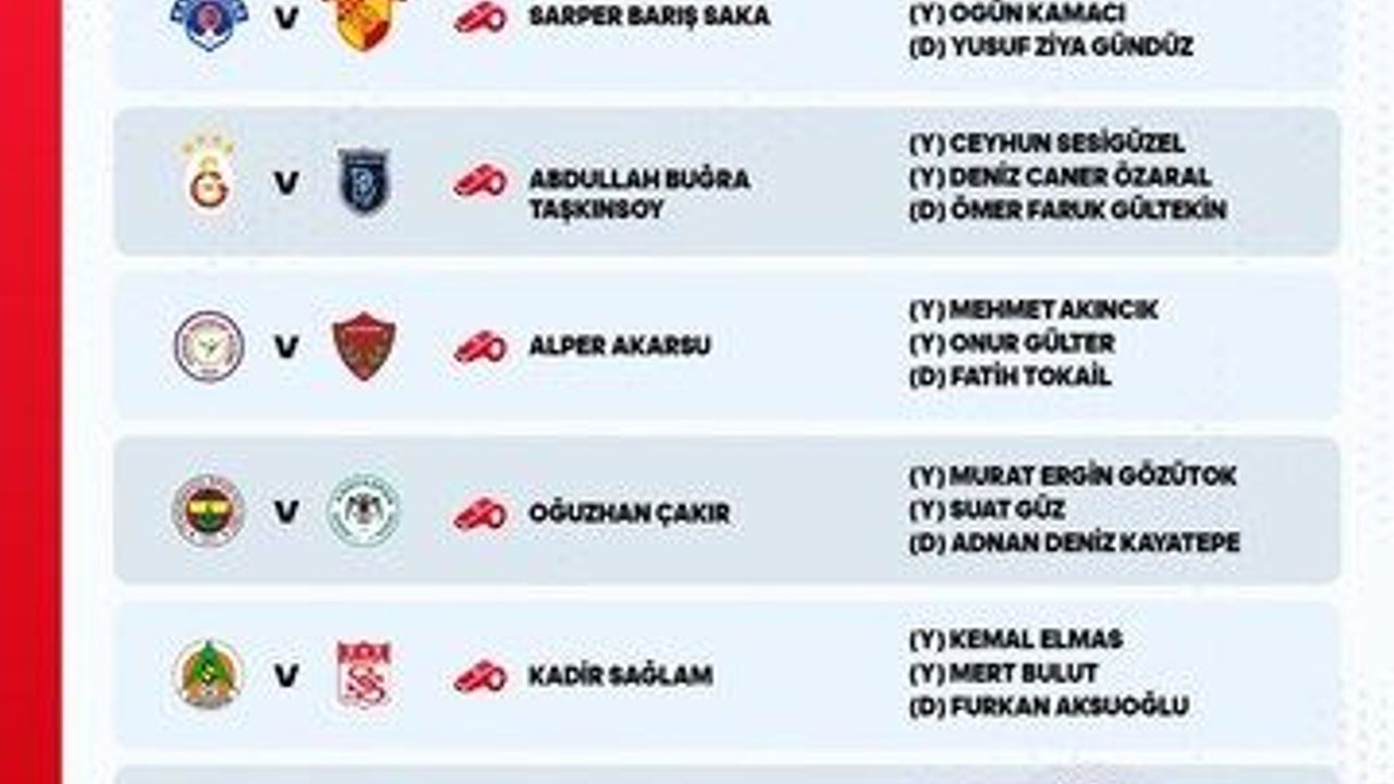 Türkiye Futbol Federasyonu (TFF) Merkez Hakem Kurulunun (MHK) açıklamasına göre, ligde haftanın maçlarını yönetecek hakemler şöyle:
