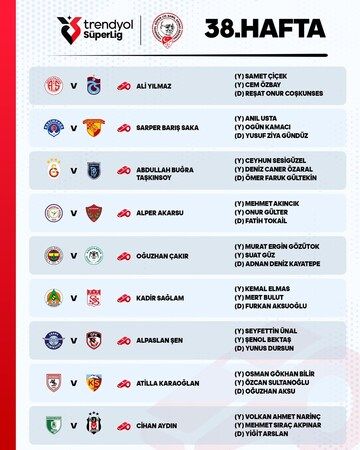 Süper Lig'de 38. haftanın hakemleri Veri Tabanlı Atama Sistemi (VeTAS) ile belirlendi.